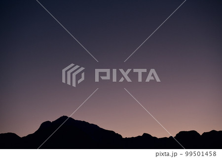 北杜市白州町、夕空に光り始めた一番星、宵の明星とシルエットの山並み