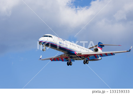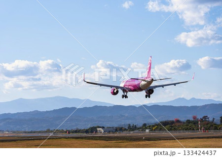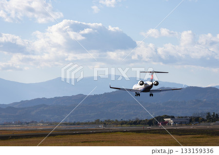 秋の仙台空港 着陸中の飛行機 宮城県名取市