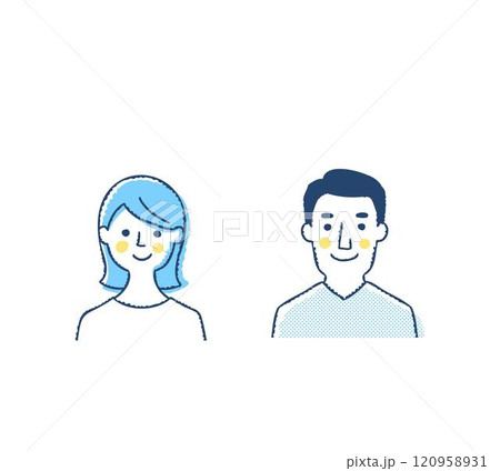 高齢者 年配 物忘れ 認知症 思い出せない 老夫婦 上半身 イラスト素材