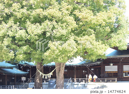 東京 渋谷区にある明治神宮 夫婦楠と外拝殿