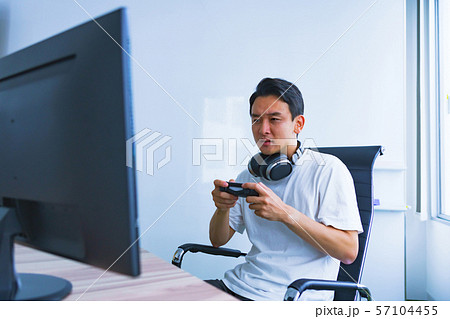 eスポーツのイメージ:コントローラーを片手に若者がゲームのプレイで失意の表情を浮かべるシーン