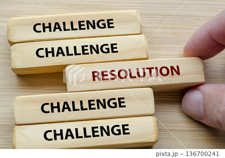 Challenge and Resolution text on wooden blocks representing solving tough challenges through structured thinking and decisive action