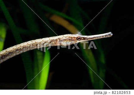 タツノオトシゴのアップ イバラタツ 龍 干支 黒バック