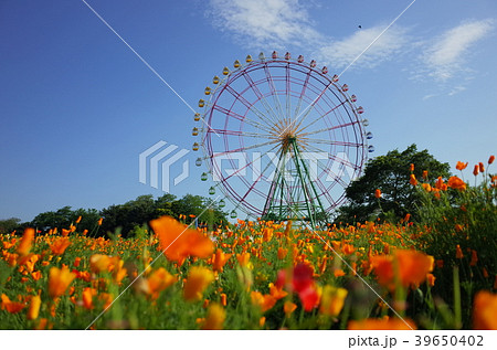 国営ひたち海浜公園の観覧車とポピーの花畑