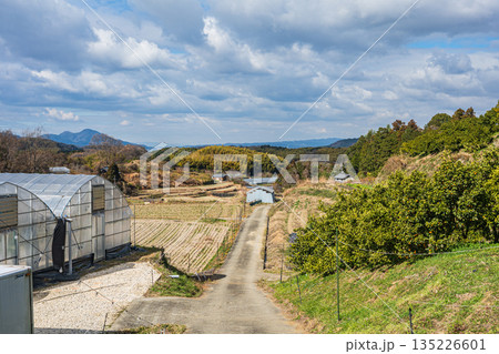 冬の明日香村風景 山腹の果樹園 奈良県