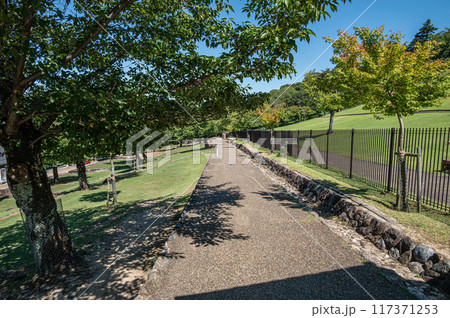 奈良県宇陀郡曽爾村にある秋の曽爾高原に生えるすすきと散策路