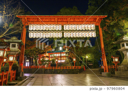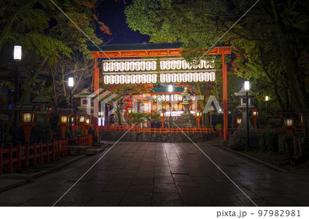 京都 真夜中の八坂神社 参道(本殿国宝奉祝)