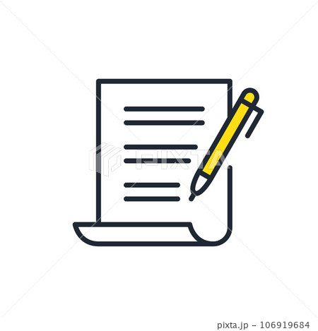 万年筆で署名する契約書のシンプルなベクターアイコンイラスト素材