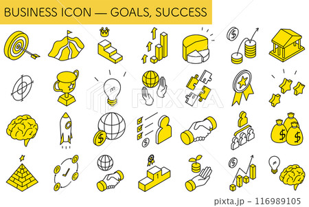 ビジネス 契約、商談、収益、成長、組織、目標、ゴールなど 色々なアイコンセット