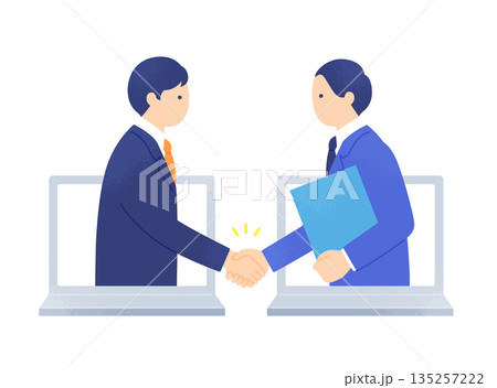 シンプル イラスト 握手するビジネスマンの男性二人 ビジネスシーン