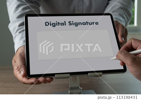 Close up businessman hand electronic Signature on Tablet Sign document of deal on digital gadget