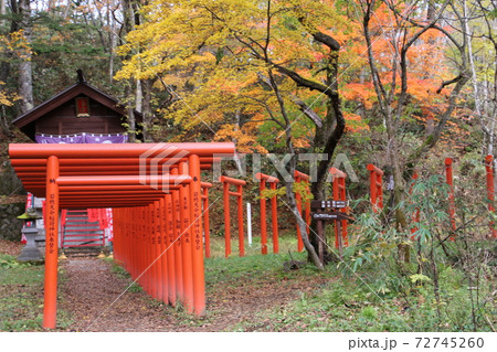 戸隠の鏡池と奥社の中ほどに建つ天命稲荷