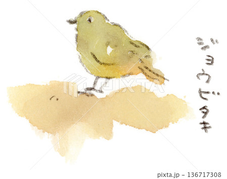 冬の小鳥、ジョウビタキのメスの水彩画イラスト