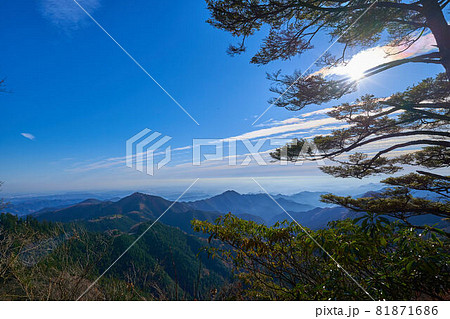 東京都青梅市御岳山の奥の院付近の登山道から東側(日の出山,麻生山など)を見る