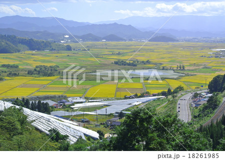 収穫期の置賜盆地