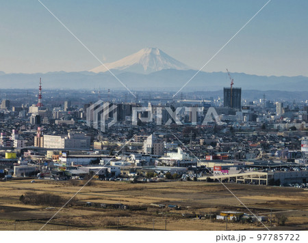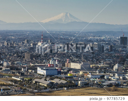 雄大な富士山と川越市街地 埼玉県川越市(ドローンによる空撮)