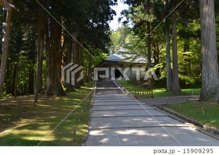 中尊寺 参道 江戸時代に植樹された樹齢300年の老杉が木陰を作り参拝客を迎え荘厳な雰囲気