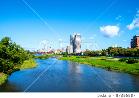 杜の都仙台 初秋 広瀬川 広瀬橋上流の眺望