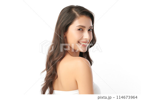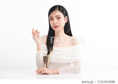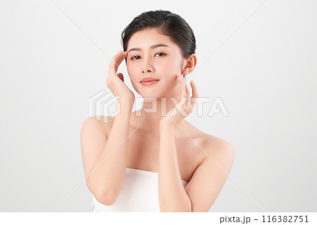 Beautiful young asian woman with clean fresh skin on white background, Face care, Facial treatment, Cosmetology, beauty and spa, Asian women portrait.