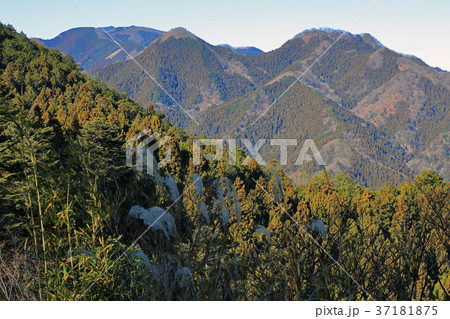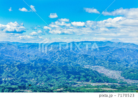 東京都青梅市御岳山の奥の院付近の登山道から東側(日の出山,麻生山など)を見る