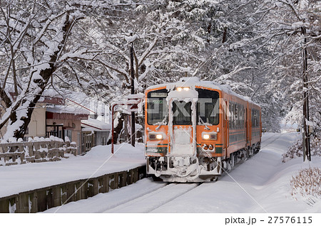 【青森県五所川原】津軽の雪景色の中を走る列車