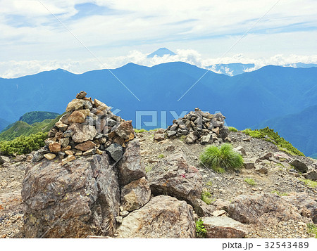 奥聖岳の山頂から見る富士山 南アルプス聖岳と兎岳登山