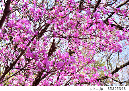 ミツバツツジ 黒川温泉春風景 春の山 春の雑木林 春イメージ風景