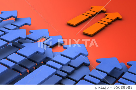跳躍しながら、前進する沢山の青い矢印。反撃と奪回作戦を表す抽象的なコンセプト。