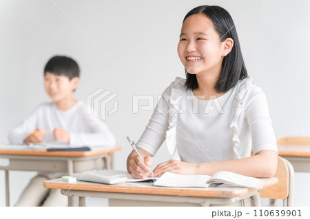 学校の教室で勉強する小学生の男女(女子・授業・教育)