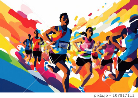 Colorful Running marathon poster, people run, colorful poster. illustration