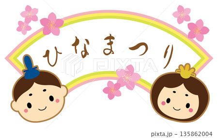 かわいいお雛様と桃の花の扇形タイトルフレーム/ひなまつり