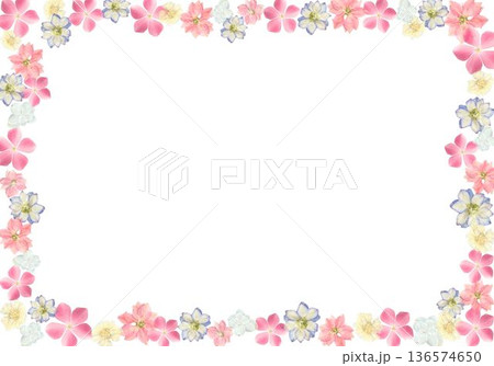 お祝い 花フレーム 背景素材 ピンクとブルーの押し花風ボタニカル枠 余白あり
