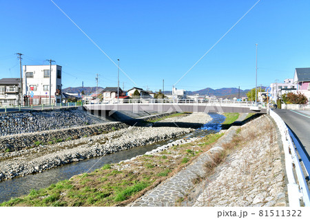 松本市街(女鳥羽川 千歳橋 青空 くま 川)