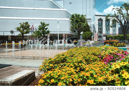 松本市街(花いっぱい運動 発祥の地 花時計 噴水)
