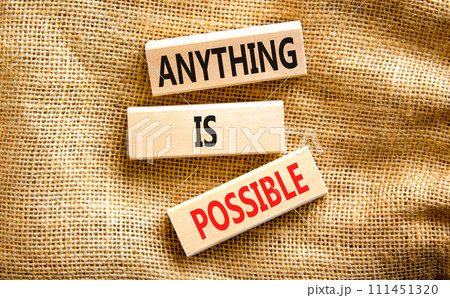 Anything is possible symbol. Concept words Anything is possible on beautiful wooden blocks. Beautiful canvas table canvas background. Business anything possible concept. Copy space.