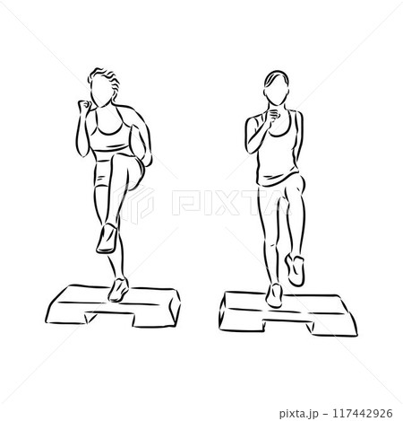 Hand drawn sketch of an exercising woman. Vector illustration.
