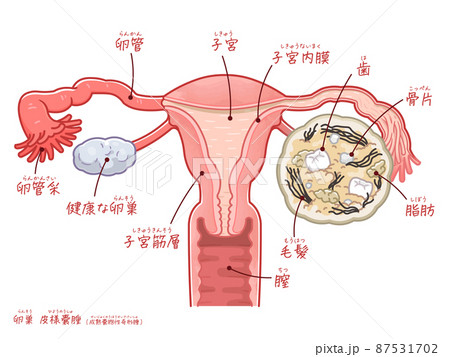 卵巣嚢腫・皮様嚢腫・奇形腫、イラスト、子宮