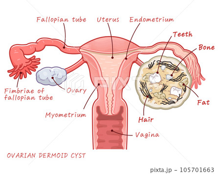 卵巣嚢腫・皮様嚢腫・奇形腫・ovarian dermoid cysts・illustration