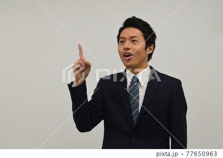ひらめいたスーツを着た男性