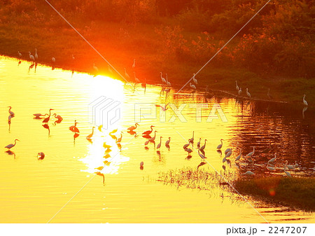 姉川 サギ 夕焼け