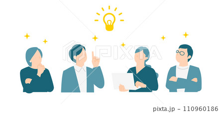 上をむき同じアイディアを共有するビジネスチームのイラスト01