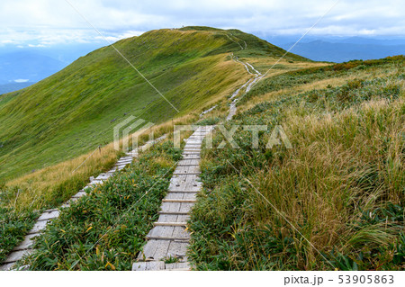 山形 月山 牛首からリフト上方面へのニッコウキスゲ咲く木道