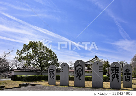 桜の季節の大口町 堀尾跡公園 姥堂と裁断橋