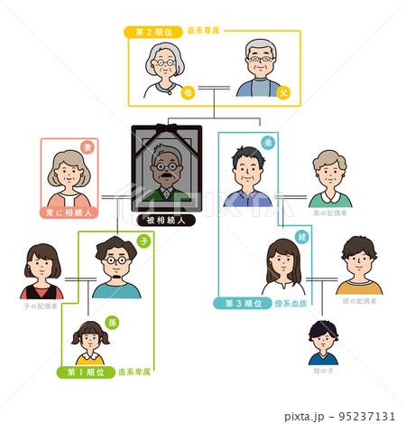 相続関係図 家系図 高齢者 シニア 親族 シンプル