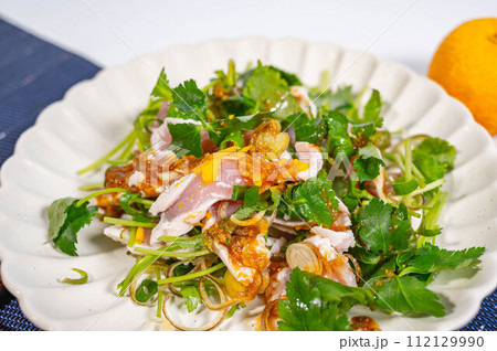 香味野菜と鶏たたきの和風サラダ