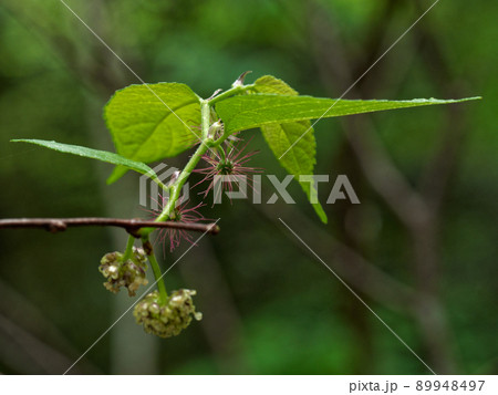 和紙の材料にも使われたヒメコウゾの雌花は糸状の花柱がありイソギンチャクのよう