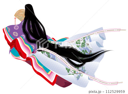 平安絵巻風の十二単衣の女性のイメージイラスト