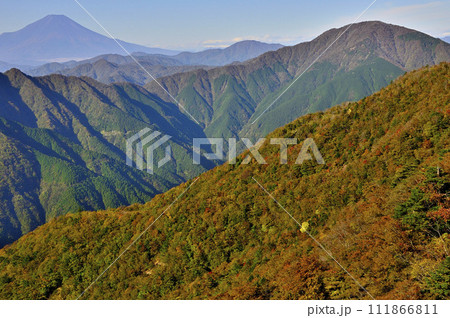 紅葉の丹沢山地 姫次より富士山と西丹沢を望む