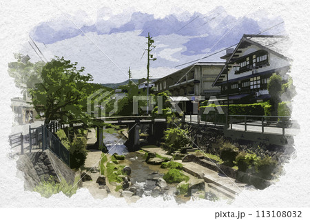 水彩画風 玉造温泉 玉湯川 島根県松江市