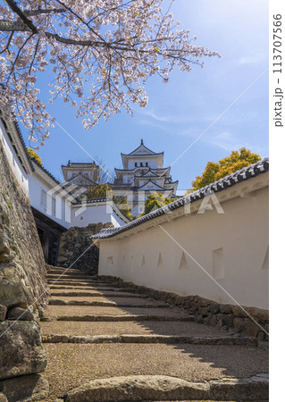 満開の桜と姫路城(はの門手前の将軍坂)